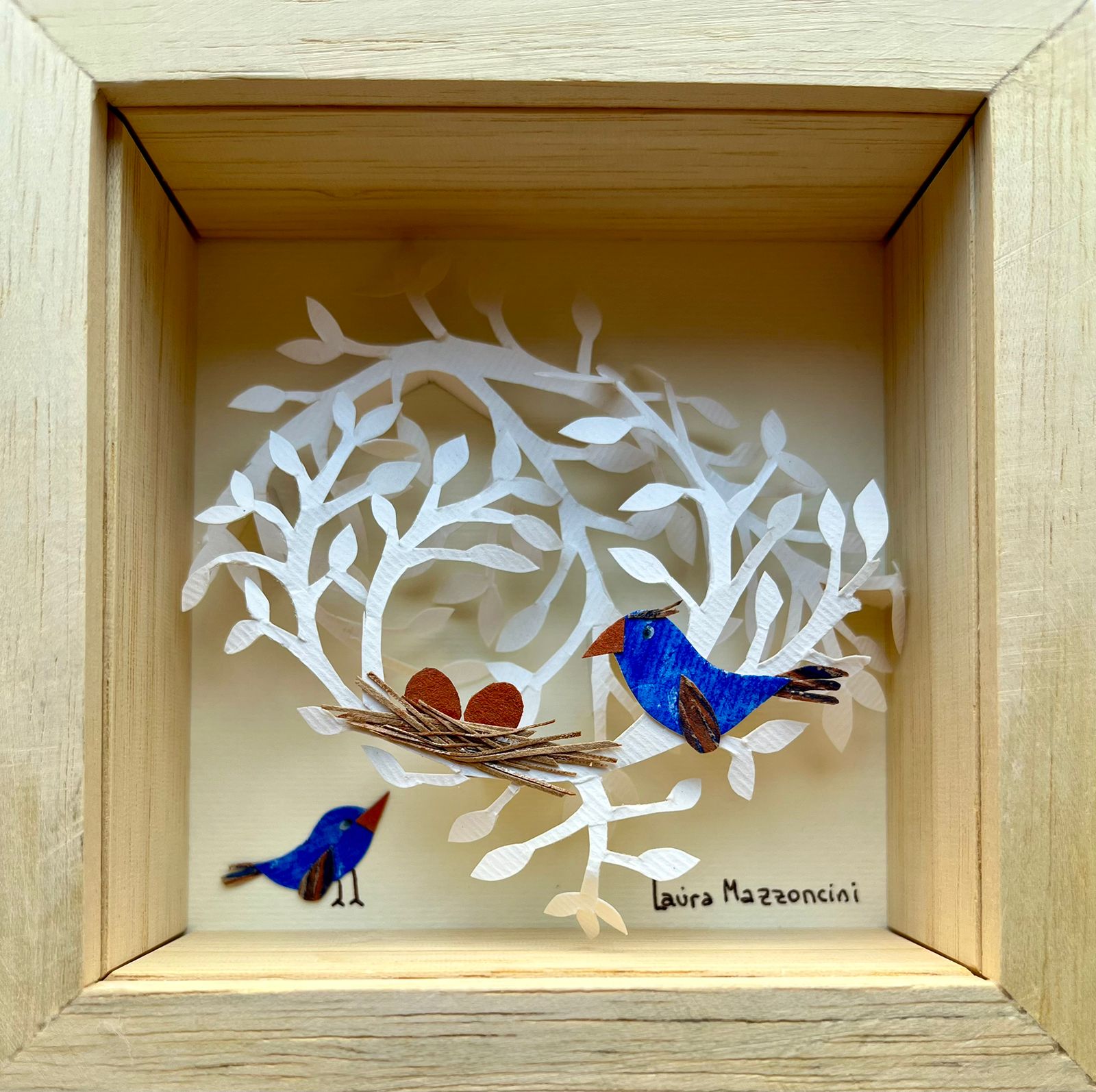 CUADRO PÁJARO EN NIDO, Enmarcado en varilla de Marupá.