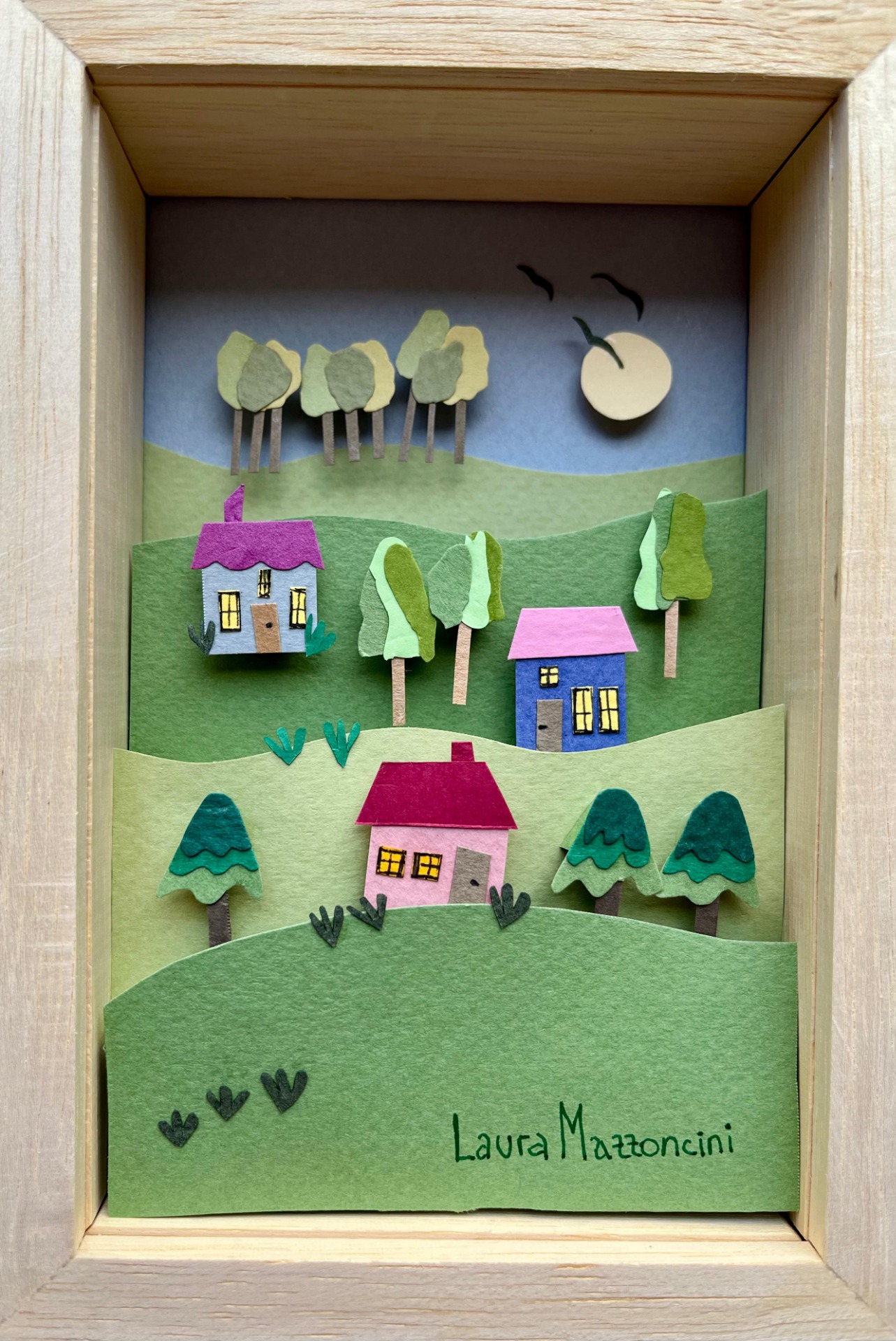 CUADRO PAISAJE C/ CASA, Enmarcado en varilla de Marupá.