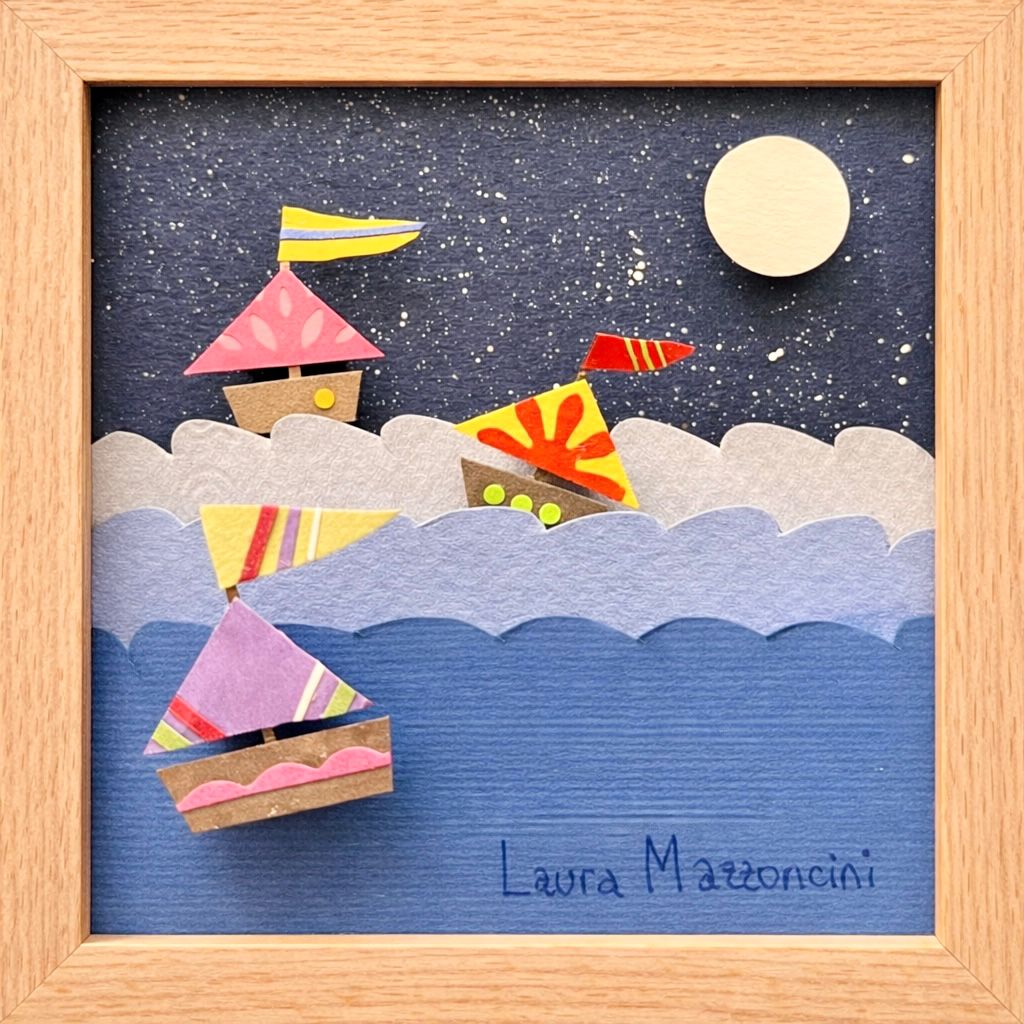 CUADRO BARCOS NOCHE, Enmarcado en varilla de Marupá.
