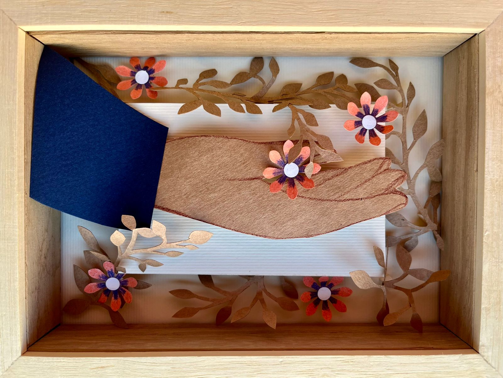 CUADRO FLOR EN MANO, Enmarcado en varilla de Marupá.