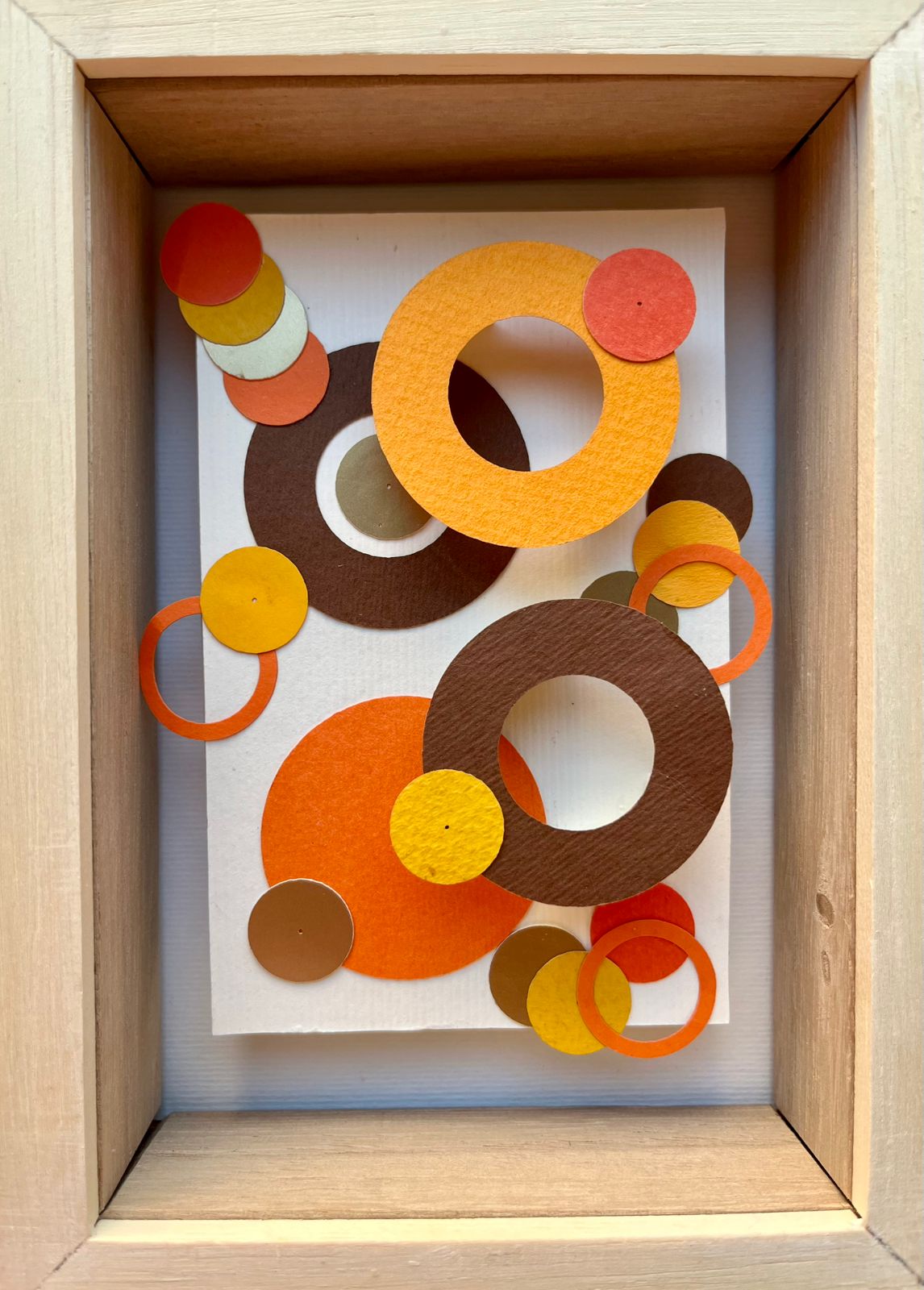CUADRO CÍRCULOS EN MARRÓN Y NARANJA, Enmarcado en varilla de Marupá.