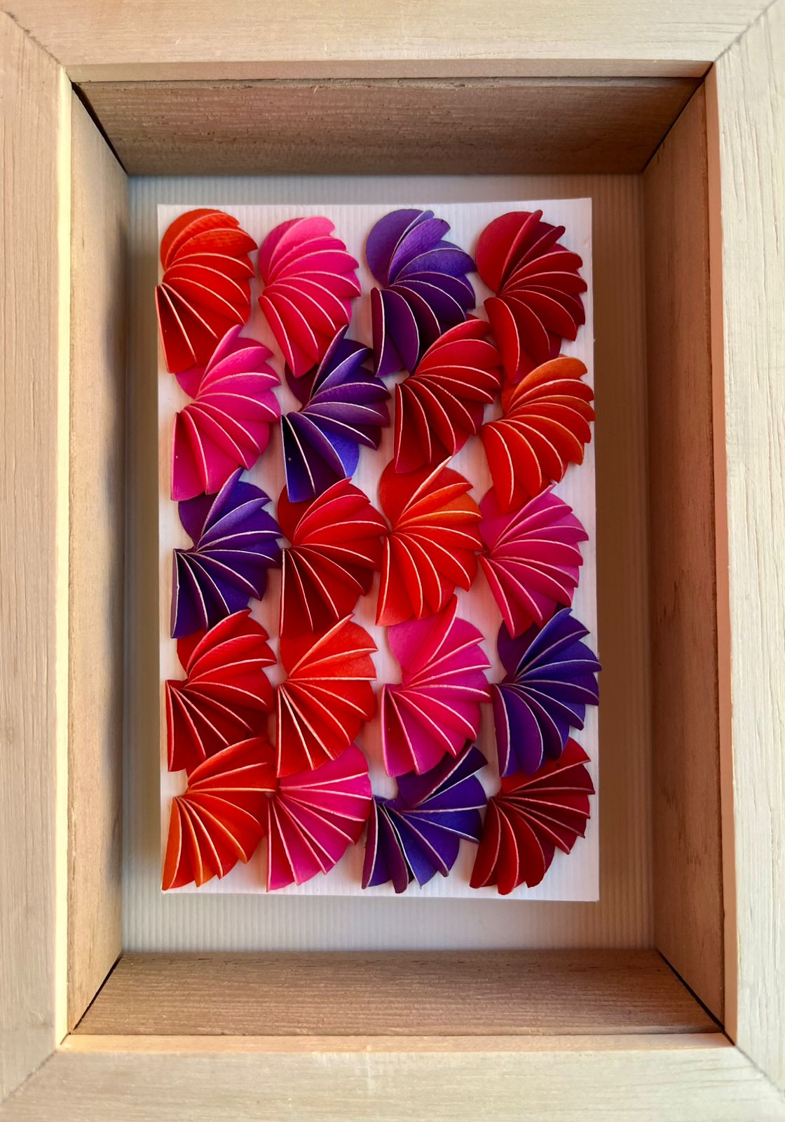 CUADRO CÍRCULOS PLEGADOS EN ABANICO , Enmarcado en varilla de Marupá.