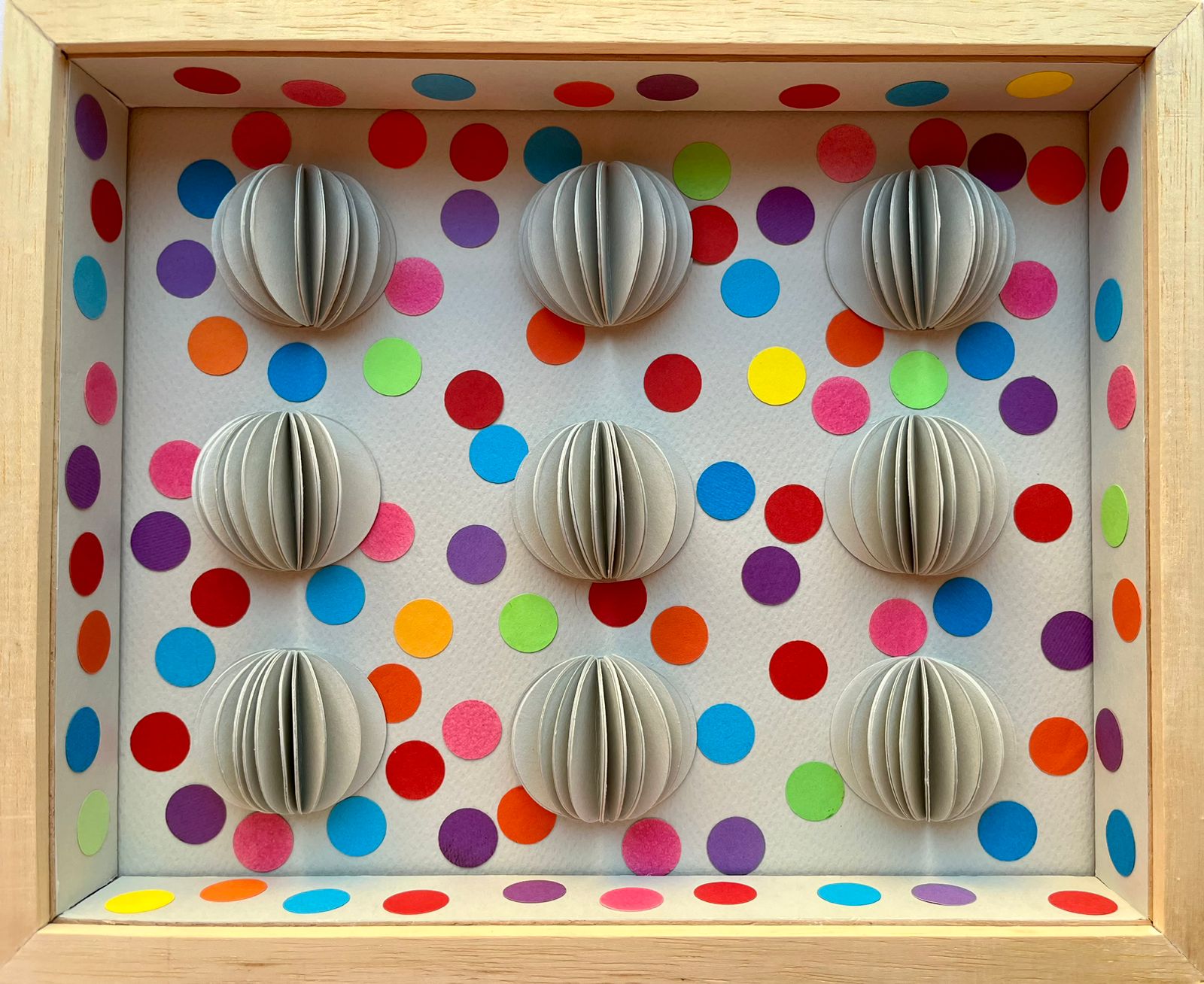 CUADRO CÍRCULOS GRISES PLEGADOS, Enmarcado en varilla de Marupá.